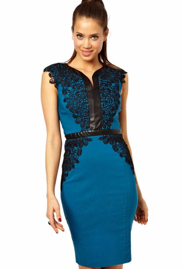 Blue V Neck Sleeveless Embroidered Bodycon Dress